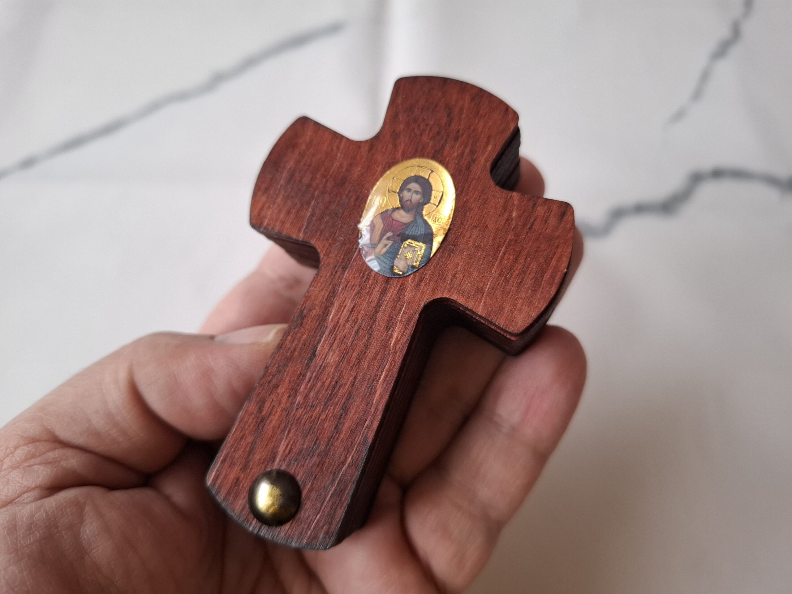 A very beautiful Serbian Orthodox wooden box with Jesus Christ on the top. You can use it for incense and briquette or it can be a nice gift for your friend or relative. A priest of the Orthodox Church consecrated the icon.