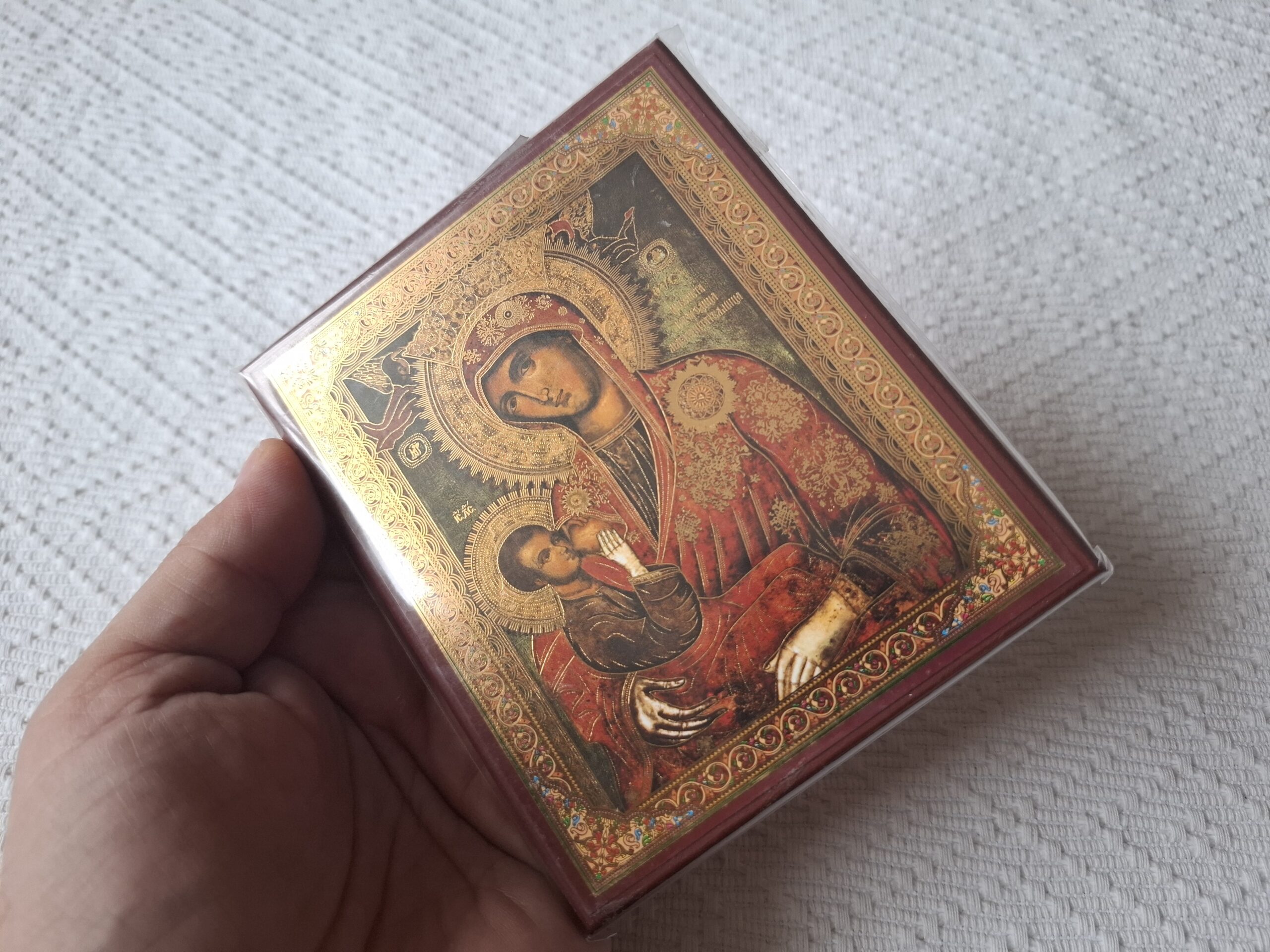 Handmade Orthodox Wood Icon Of Virgin Mary And Jesus Christ