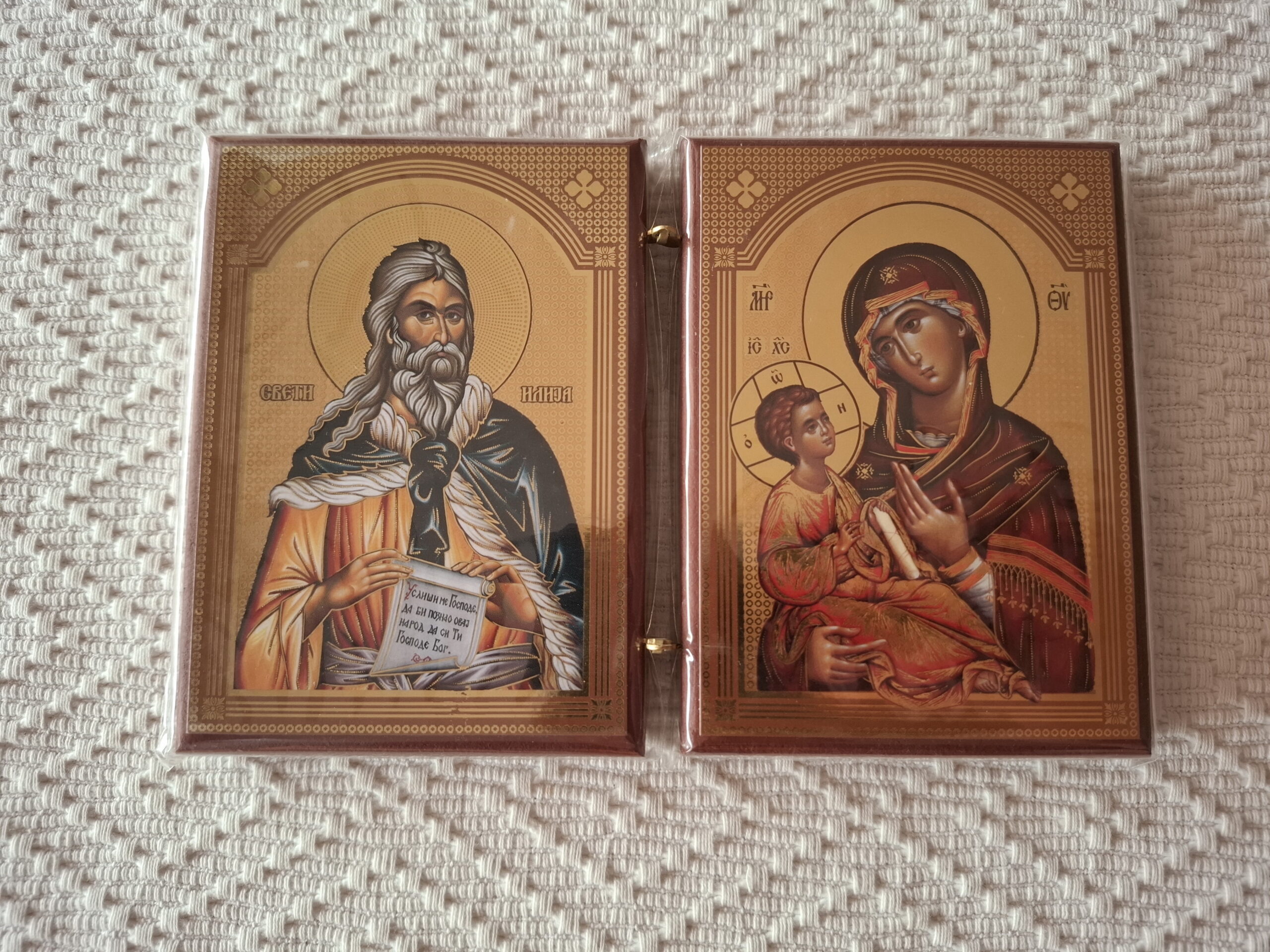 Handmade Serbian Diptych Icon St Elijah With Jesus Christ And Virgin Mary