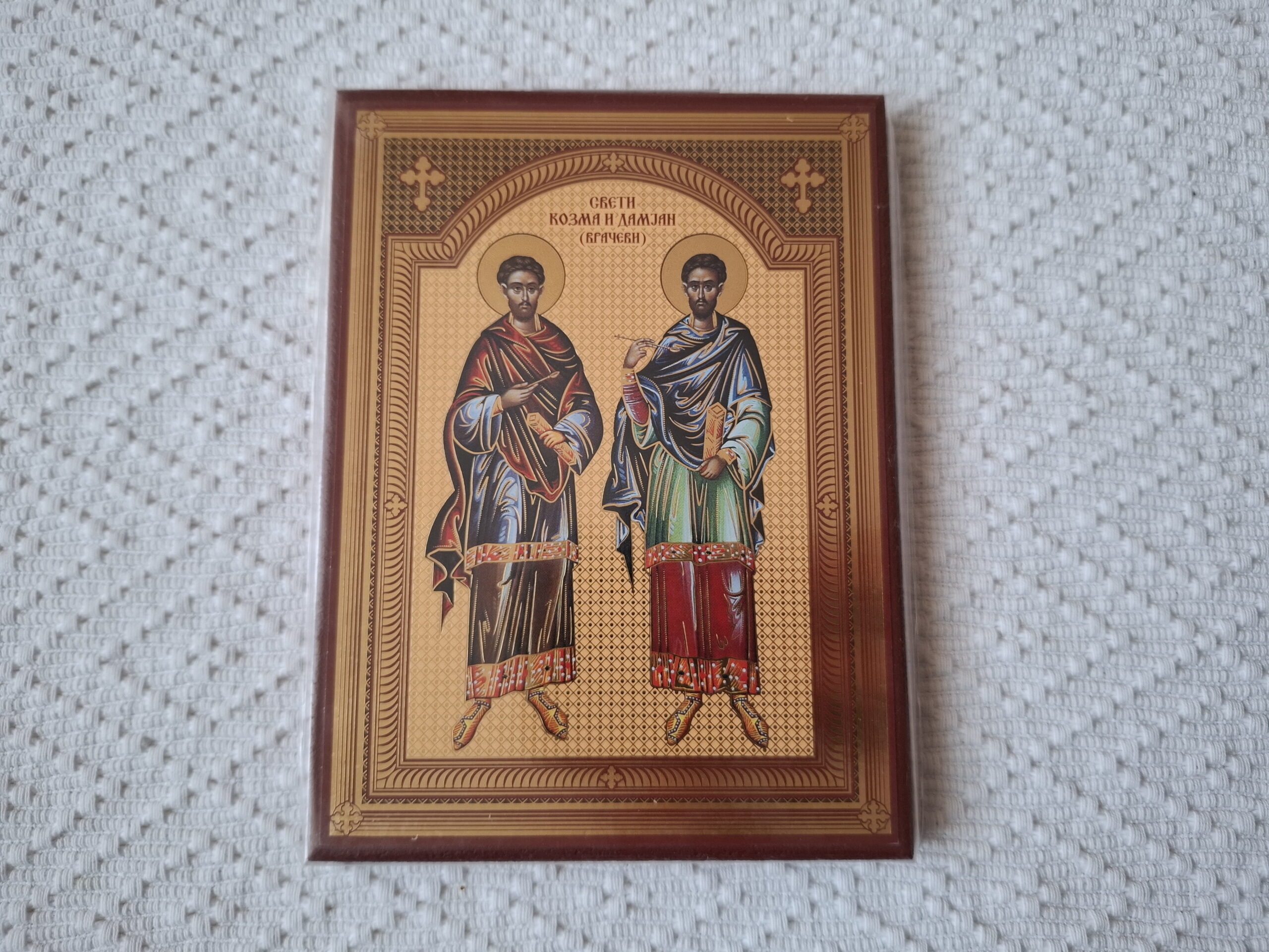 Handmade Serbian Orthodox Icon Of St Kozma and Damjan Vracevi