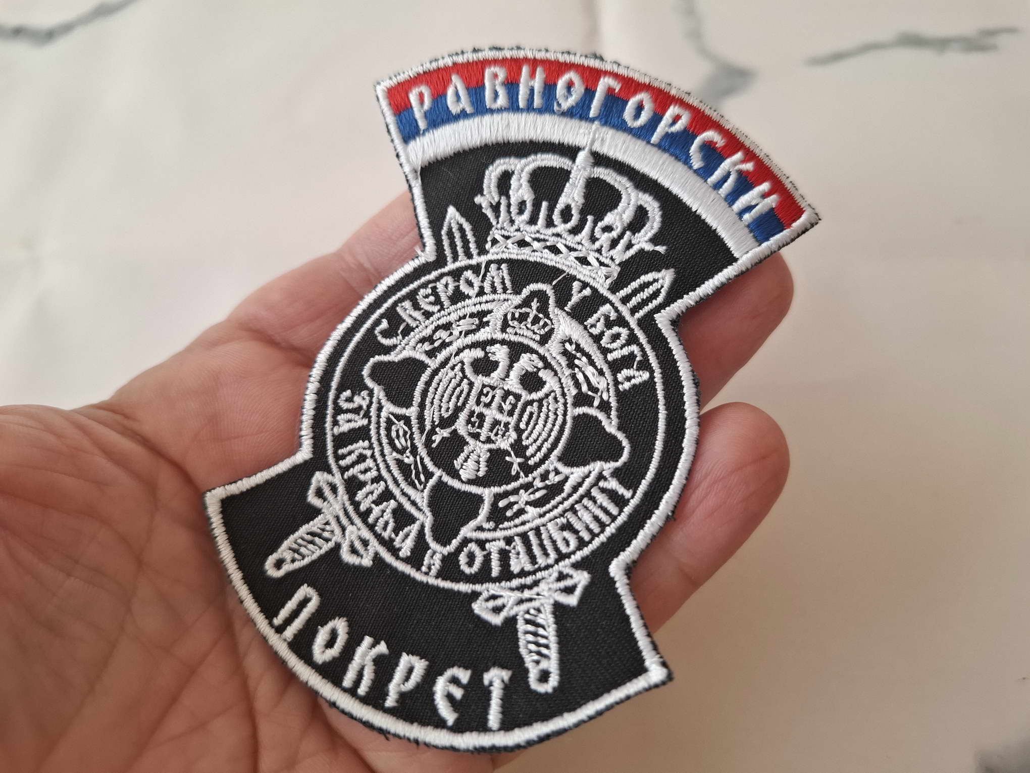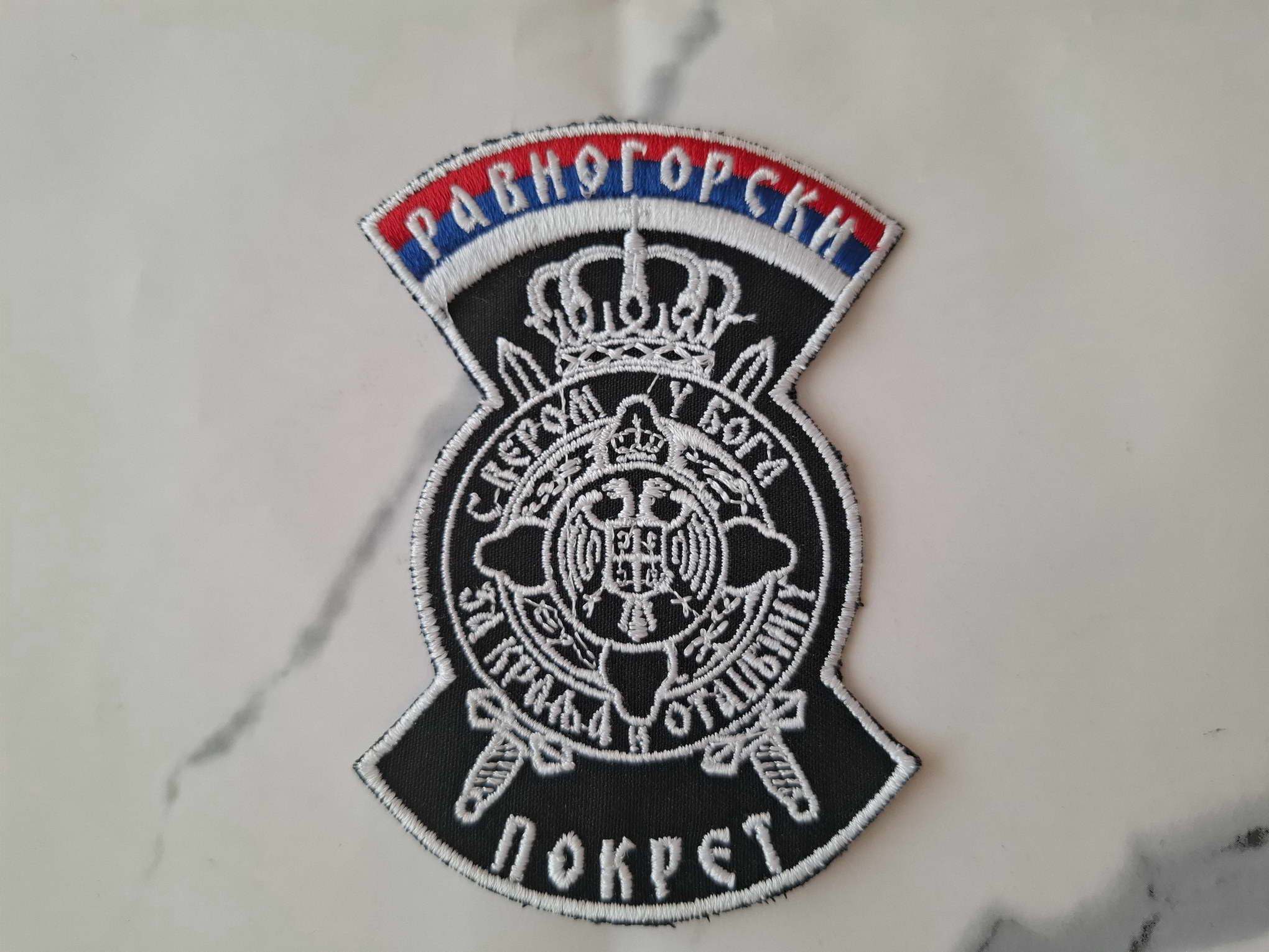 Serbian chetnics patch. It is in a black and white color, is intended to be used on the shoulder of your shirt or on your backpack or wherever you want. It can also be a good gift for your friend or relative.