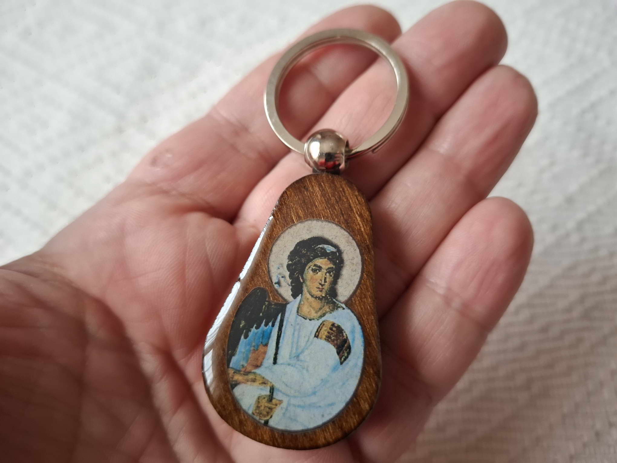 Serbian Christian Orthodox Wooden Pendant Keychain Key Ring