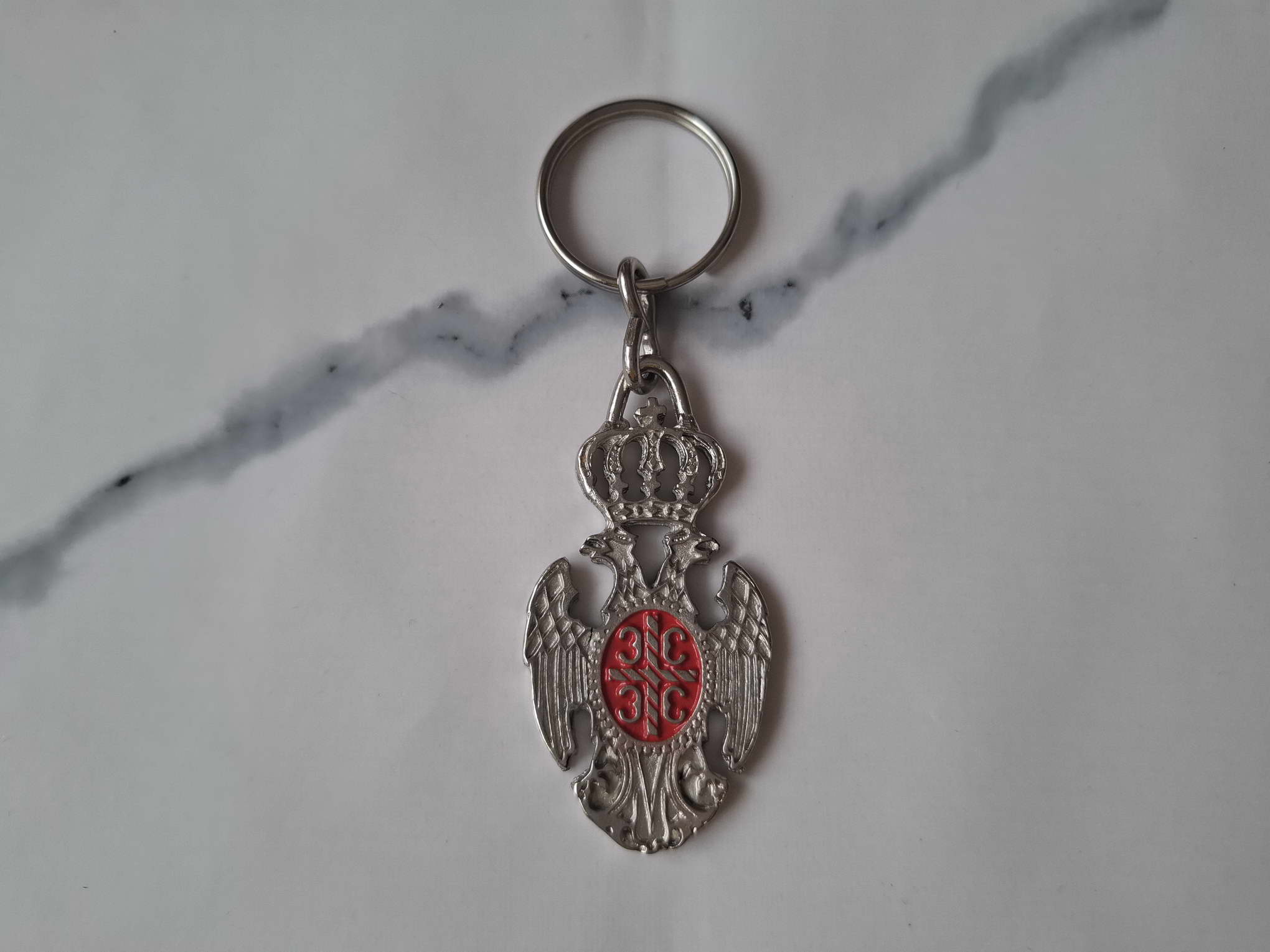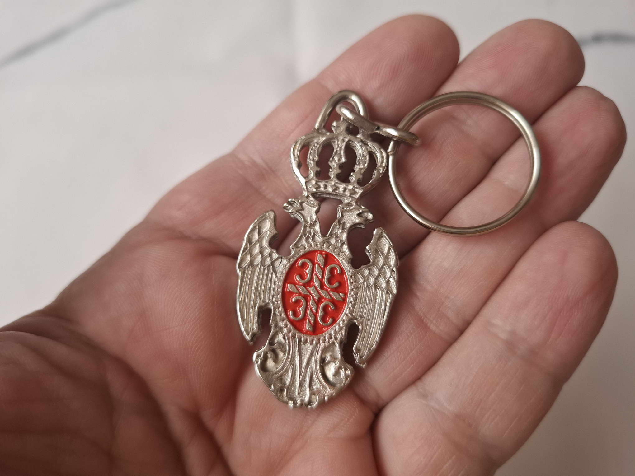 This is a very beautiful Serbian coat of arms key ring in a basic silver color. It is intended to be used as a key ring and can also be a good gift for your friend or relative.