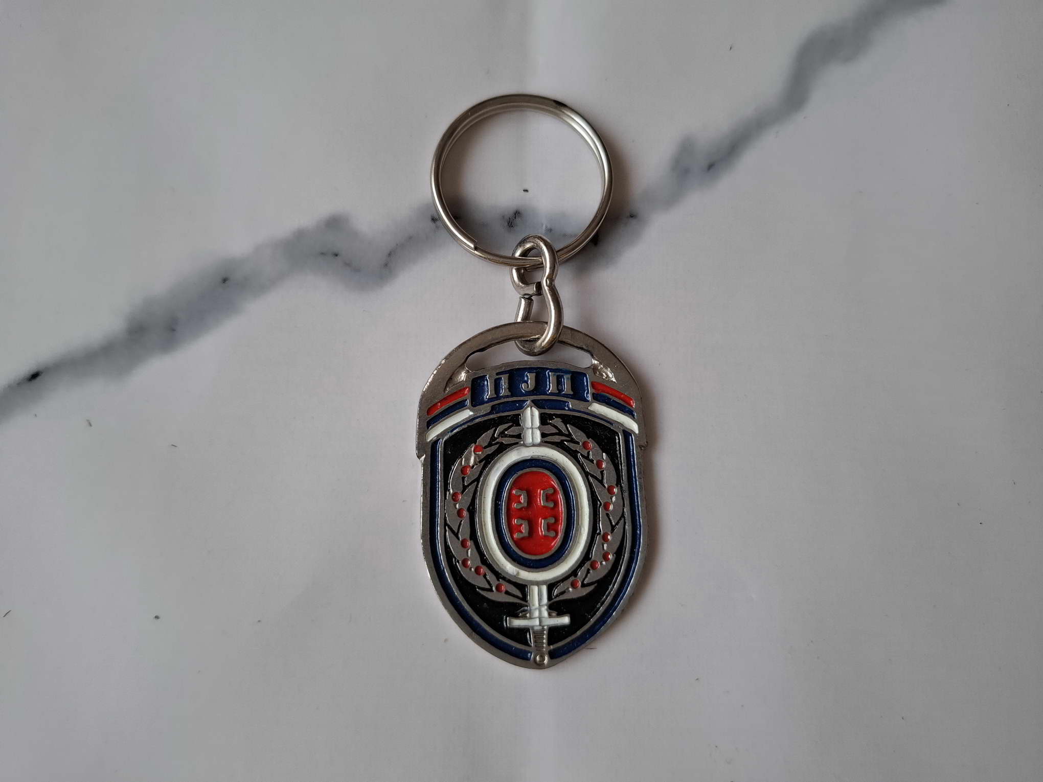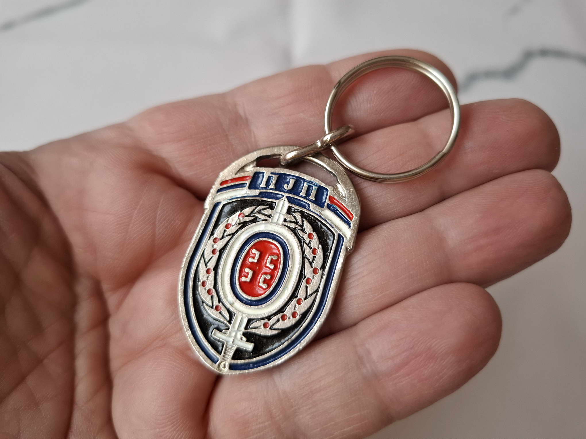 This is a beautiful Serbian police key ring in a basic silver color. It is intended to be used as a key ring and can also be a good gift for your friend or relative.