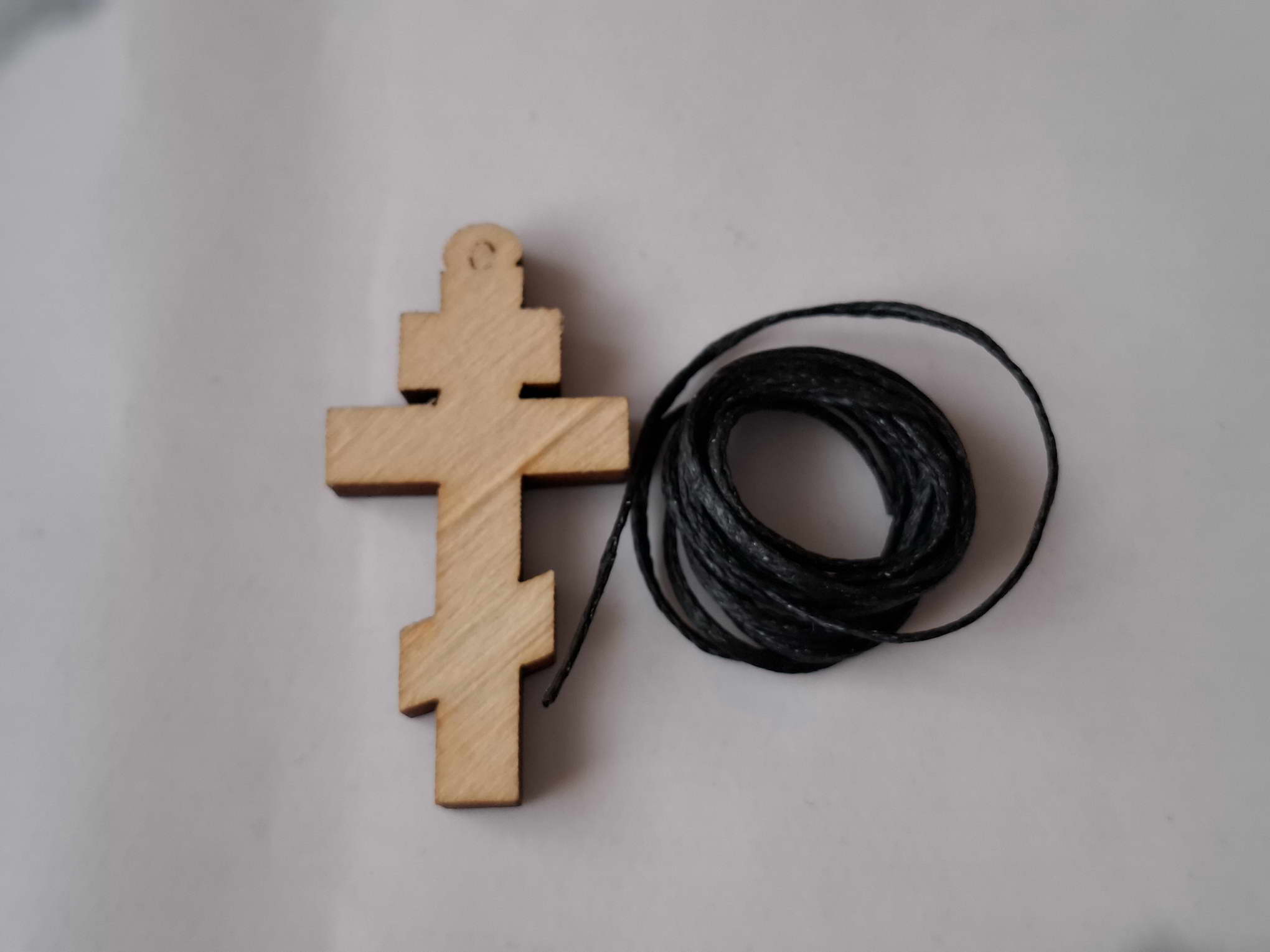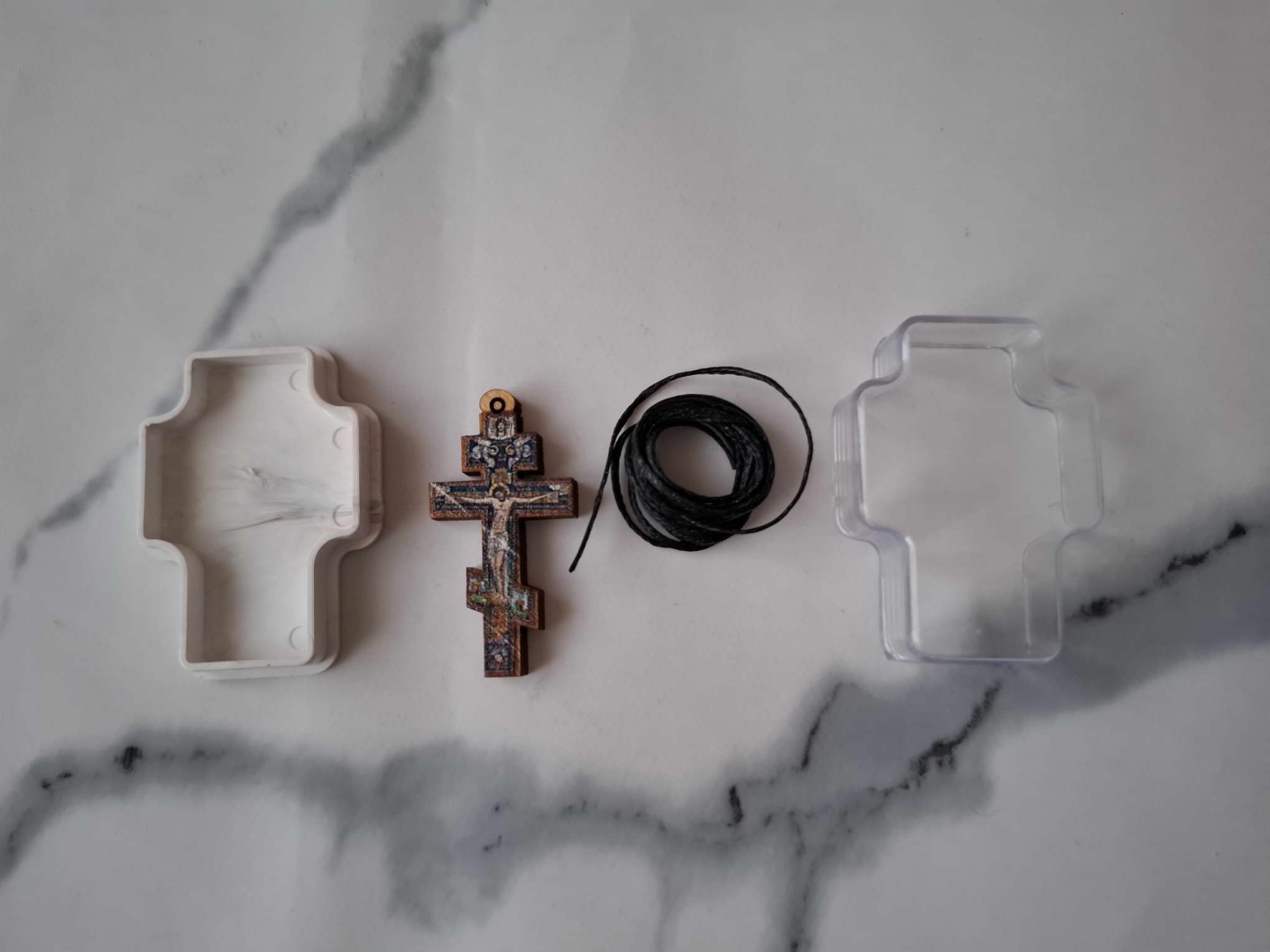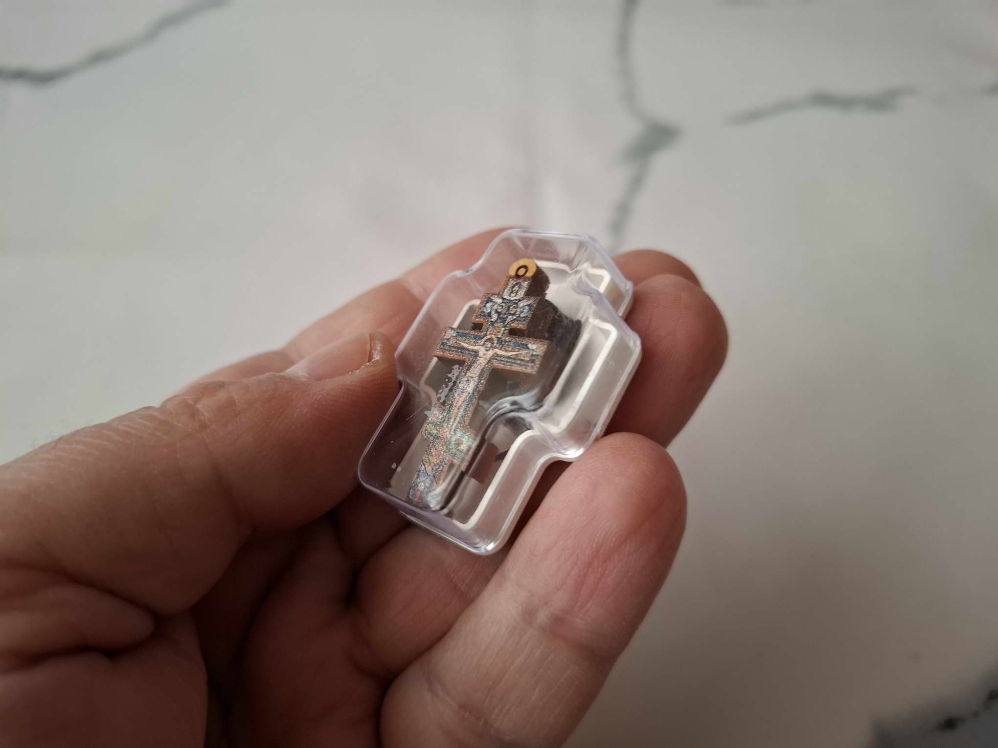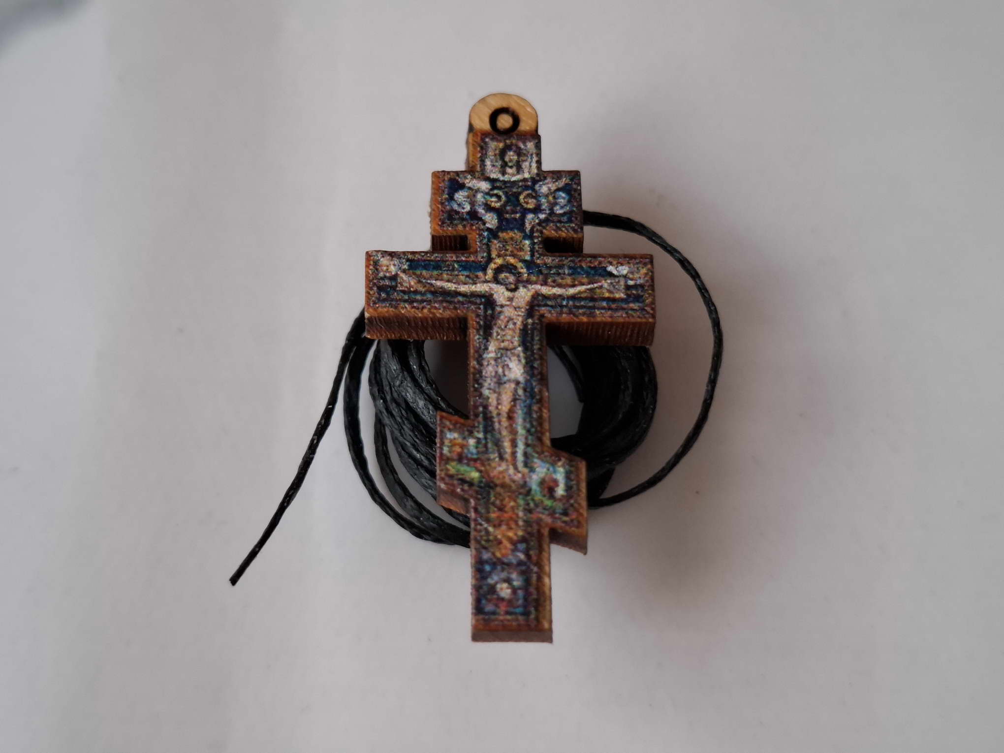 This is a small, lightweight Christian cross necklace, brown in the main color, that can be used for any occasion and can also be a good gift for your friend or relative. A priest of the Orthodox Church consecrated the item.